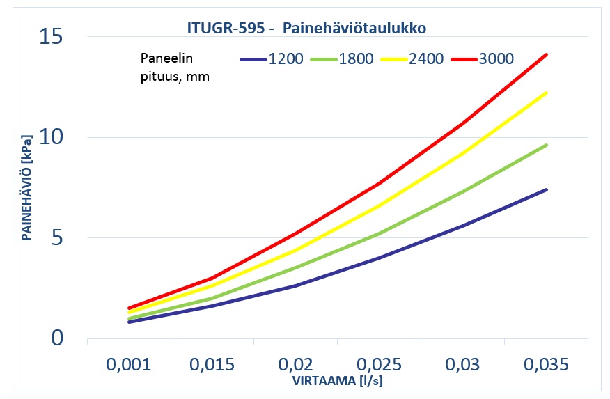 Paneelien painehäviöt katsotaan taulukosta 2. Jäähdytyksessä painehäviö 8 kPa (rinnan kytkentä) ja lämmityksessä 4 kPa.