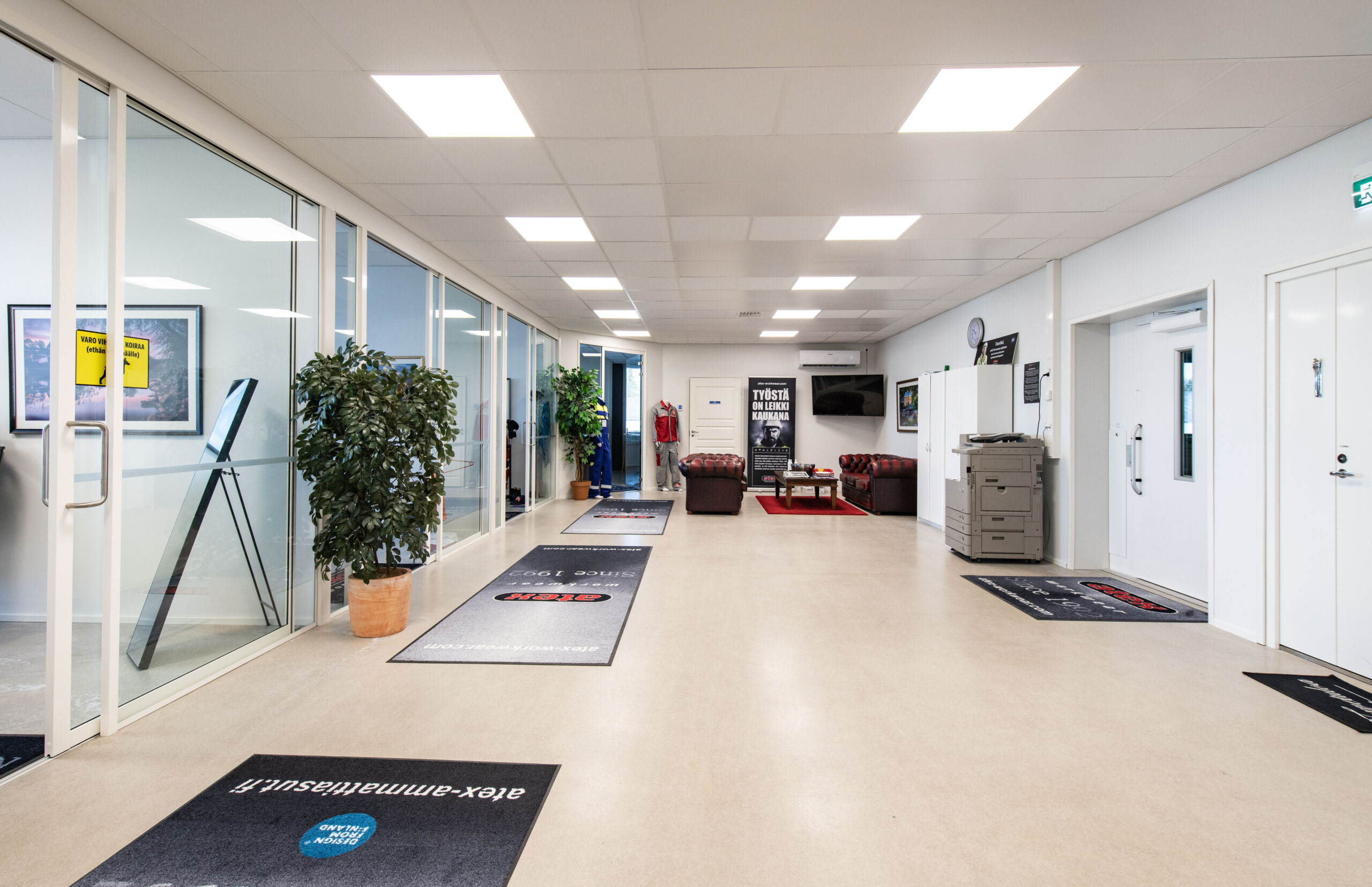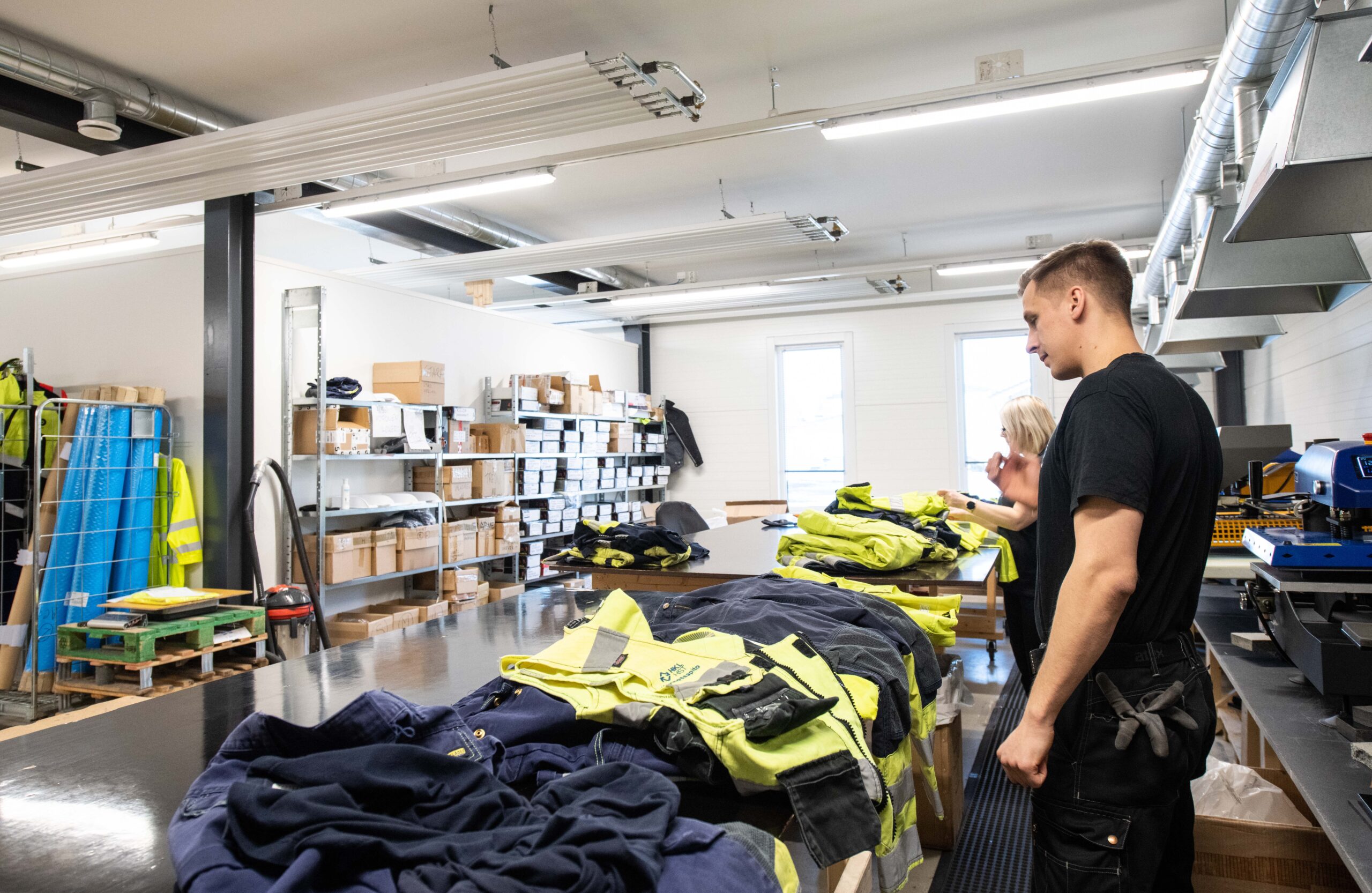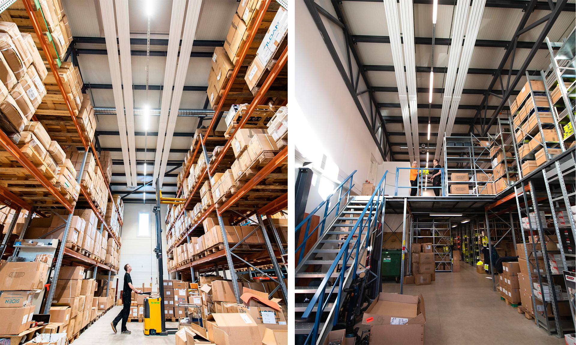 – Yksi tärkeä asia on pöly. Meillä tulee kuitenkin tekstiilien käsittelystä, trukilla ajamisesta ja tekstiilipainosta pölyä. Kun ennen 5 metrin korkeudessa sijainneet tavarat olivat pölyiset päältä, niin nyt meillä 7 metrin korkeudessa ei ole yhtään pölyä. Eli pölyn liikkuminen hallissa on kokonaan hävinnyt. Ilma on paljon puhtaampaa, Toivonen kertoo.
