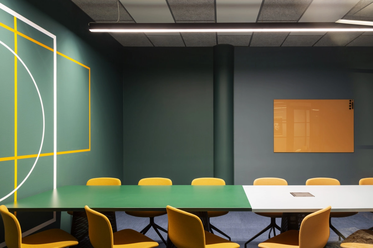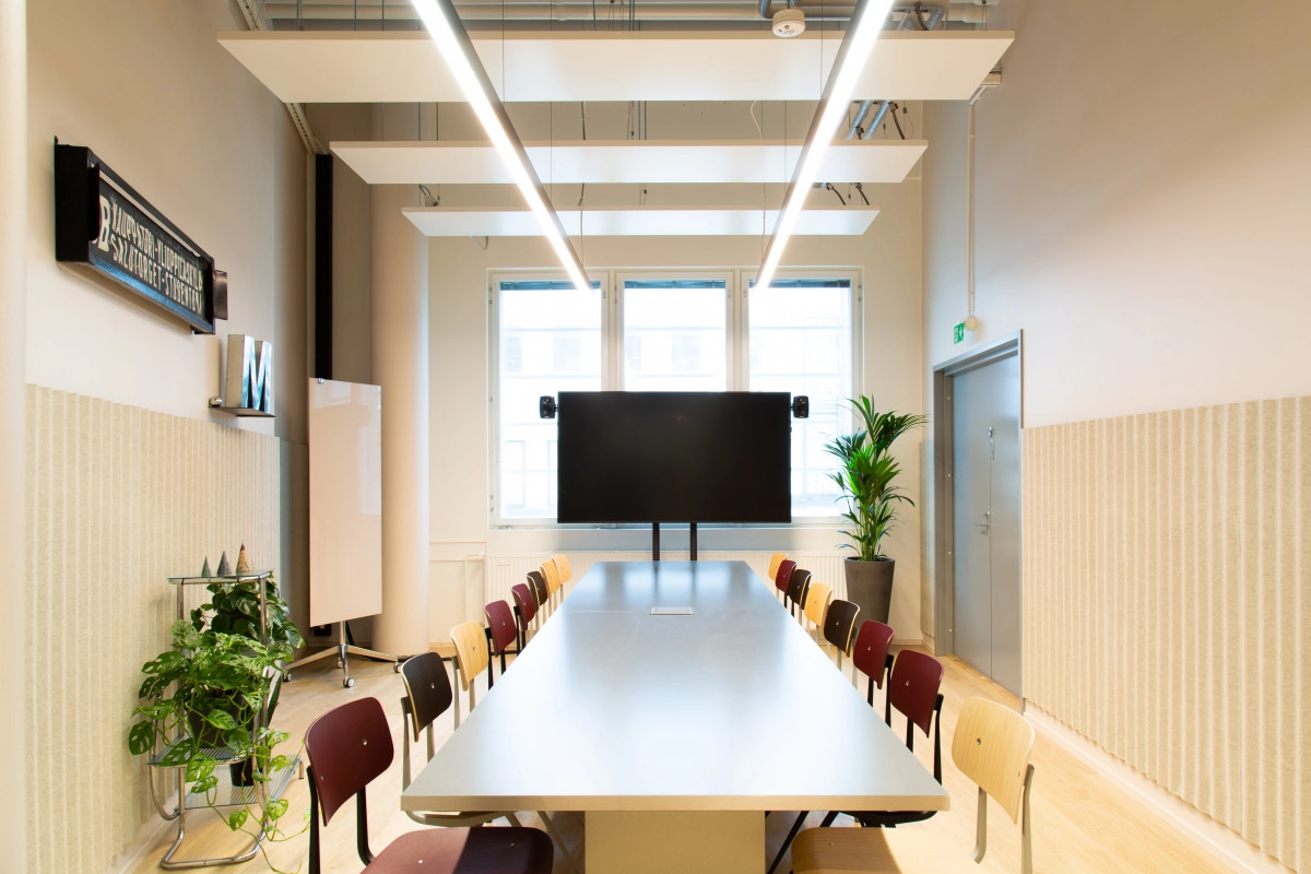 Panele ItuGraf dostępne są w różnych kolorach i wariantach wykończenia, dzięki czemu harmonijnie wpasowują się w wystrój różnych przestrzeni. Dla MOW Supernova wybrano standardowe białe panele o gładkiej powierzchni. W strefach lounge i salach spotkań panele zintegrowano z oświetleniem i zawieszono pod sufitem, natomiast w biurach zastosowano panele ItuGraf Model E, wkomponowane w sufity Ecophon Focus i Master.