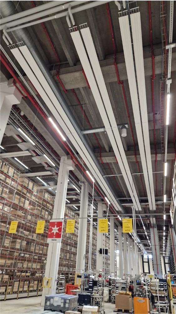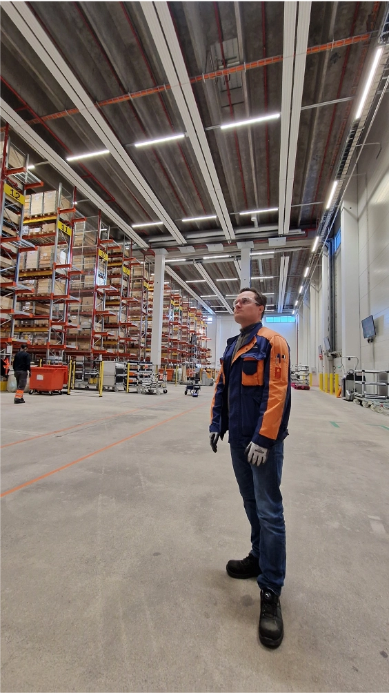 Valtran Kullervo Mansikkala on tyytyväinen Itulan energiaa säästävään ItuString+ kattosäteilylämmitykseen logistiikkakeskuksessa.