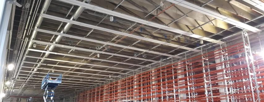 Hallin sprinklaus on pystytty toteuttamaan normaalisti paneelilinjojen sitä häiritsemättä.